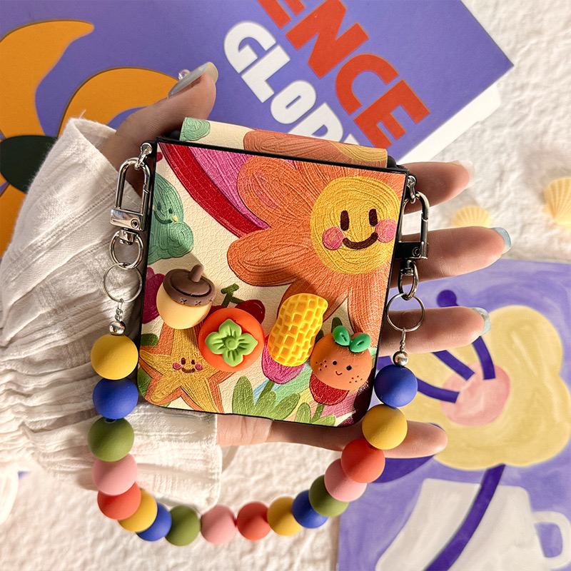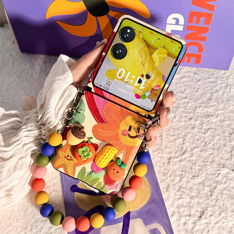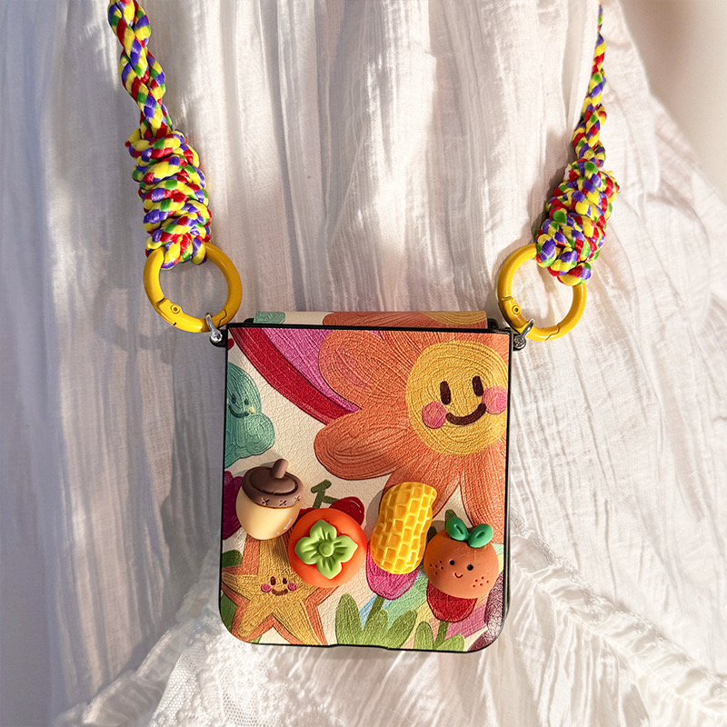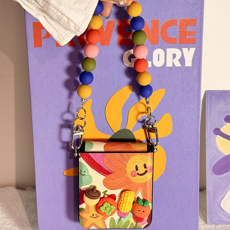 适用小米mixflip2手机壳新年连体好柿发生油画皮质华为purax小折叠屏保护套magicvflip2手提挂绳斜挎全包防摔