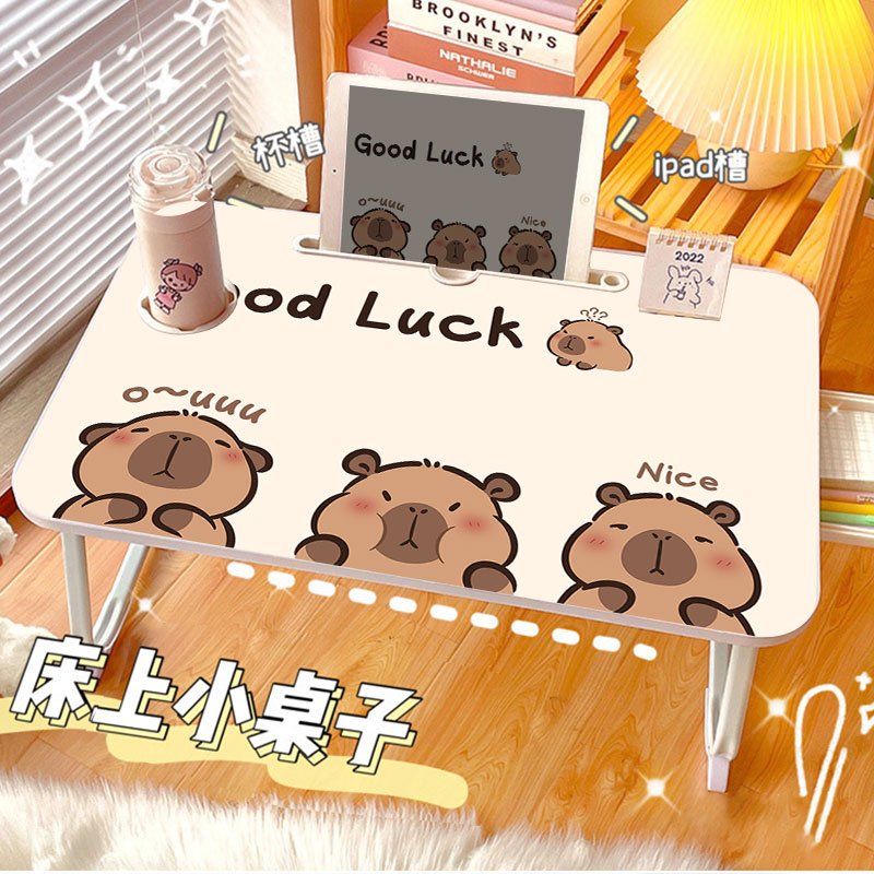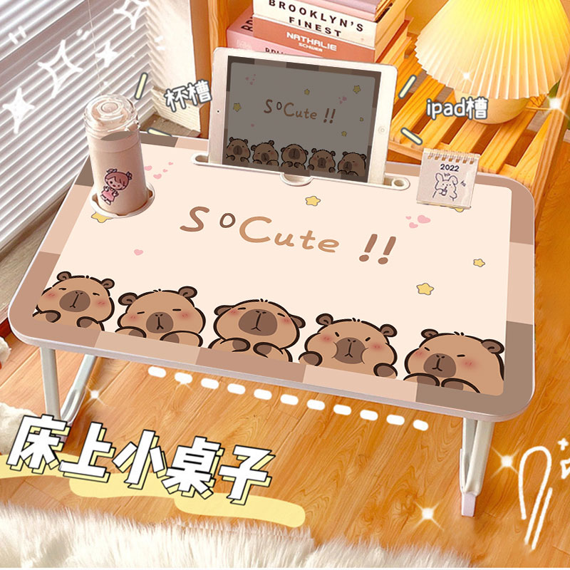 卡皮巴拉床上小桌子办公桌宿舍学生学习可爱网红水豚儿童写字小桌板可折叠卡通笔记本电脑支架家用飘窗膝上桌