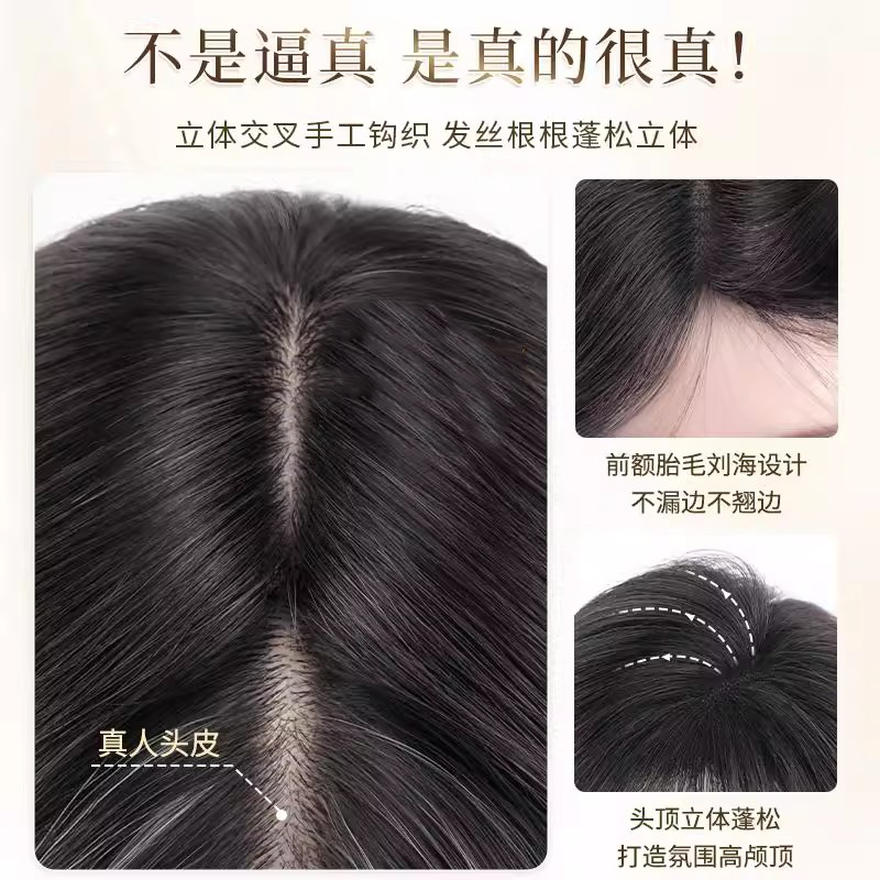 假发女片头顶补发真发增发量蓬松遮白发无痕隐形刘海补发片发际线