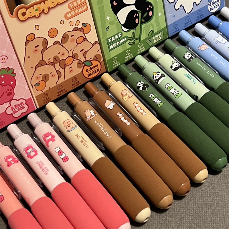 可爱防摔蛋蛋笔ins风高颜值按动中性笔速干刷题笔海绵超软黑色笔