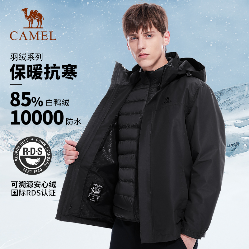骆驼户外冲锋衣女款25年三合一羽绒内胆三防保暖旅行登山服外套男
