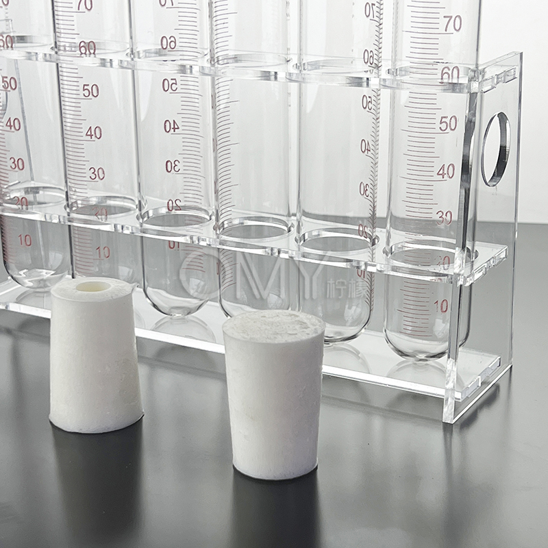 套装 刻度玻璃试管 圆底含硅胶塞 6支装 透明亚克力试管架 有机玻