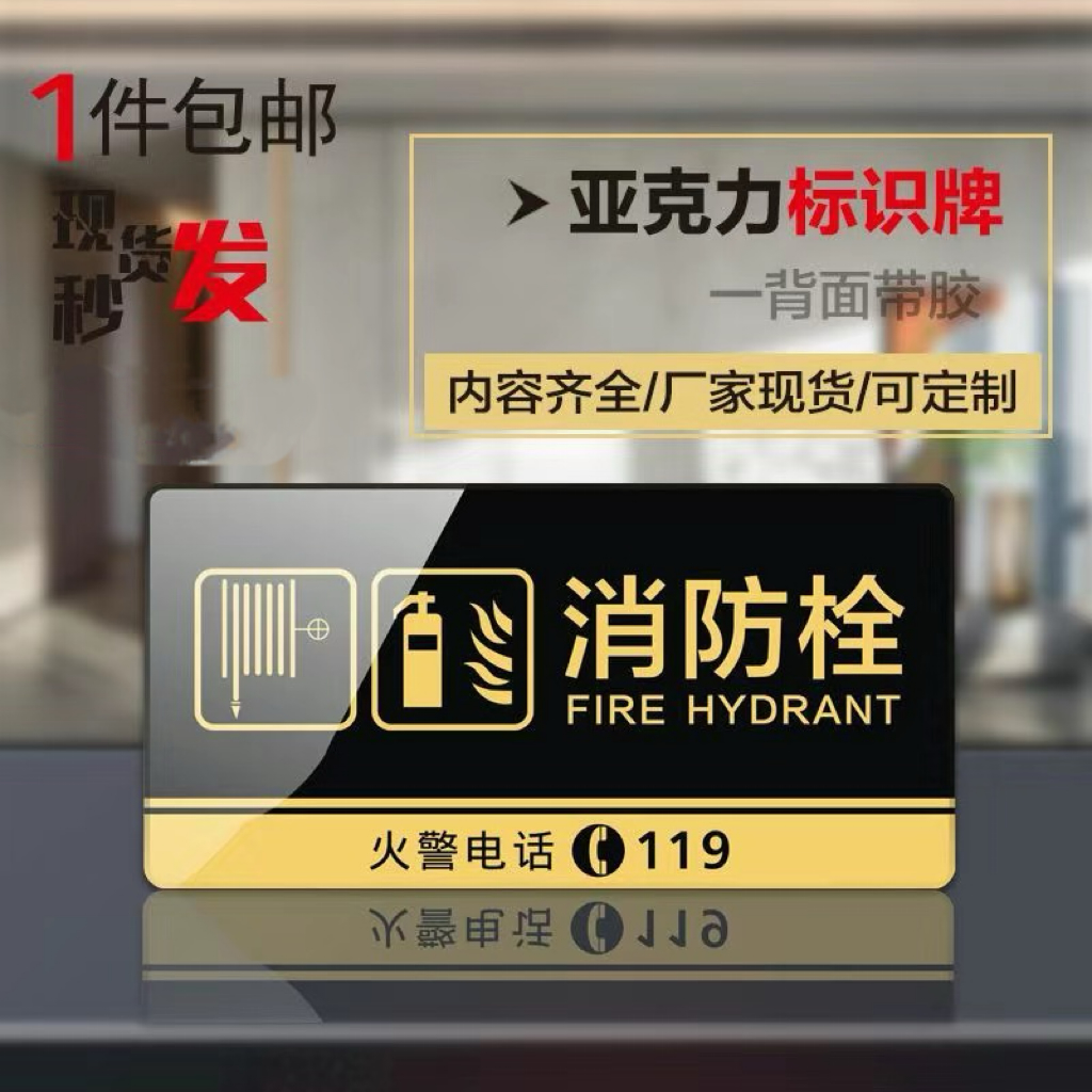 亚克力消防箱消火栓灭火器标志贴配电房有电危险温馨提示标识牌