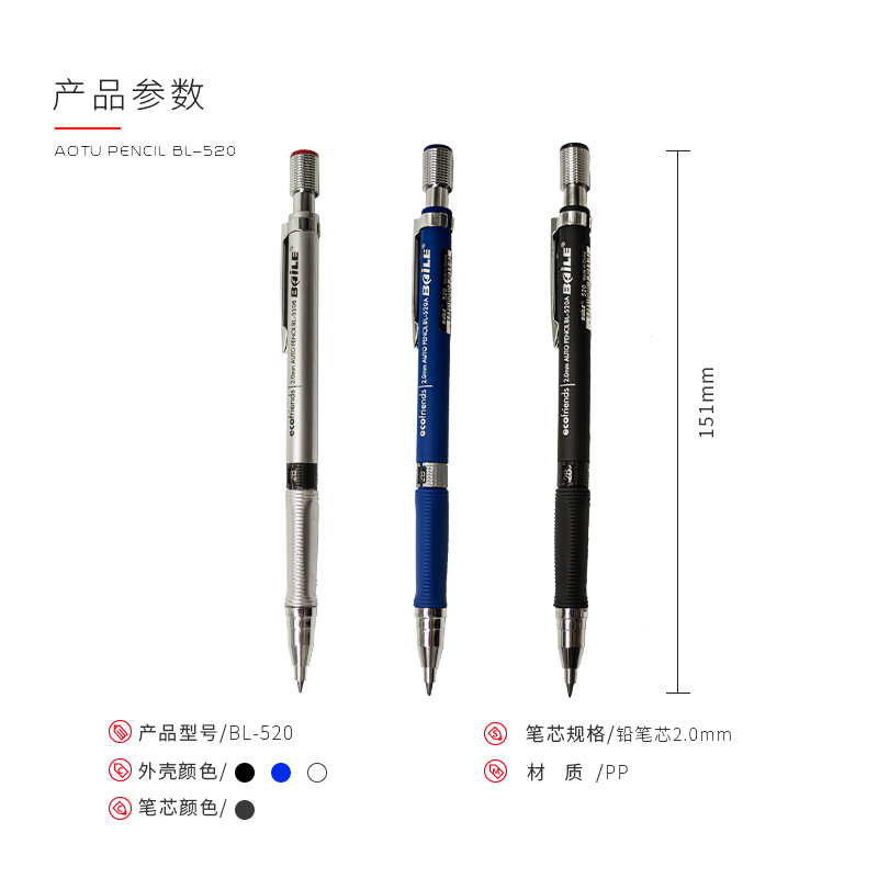 baile 百乐自动铅笔2mm石墨考试2B绘图制图素描活动铅笔带卷笔帽