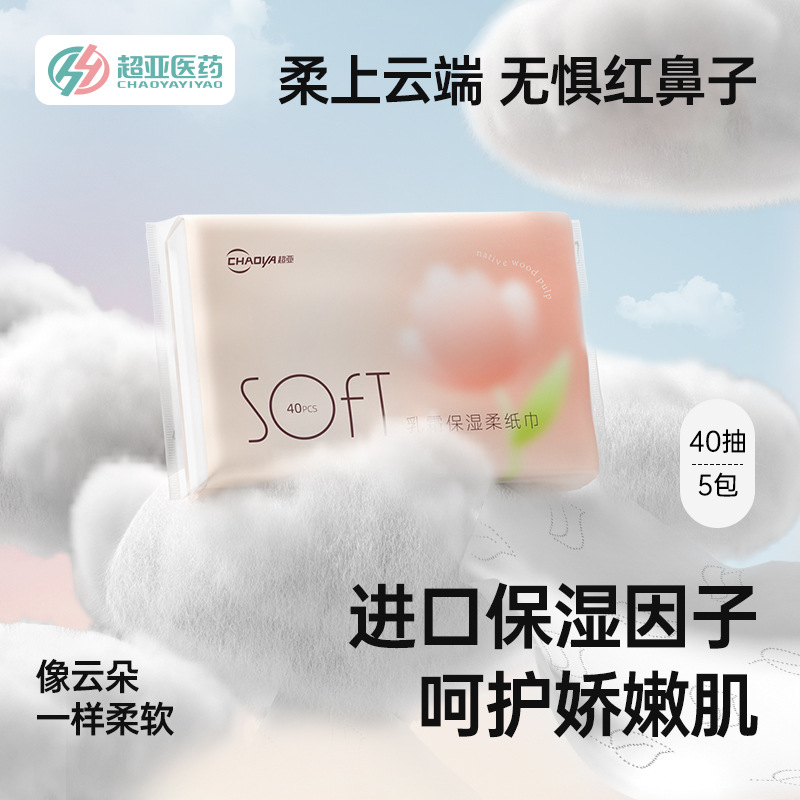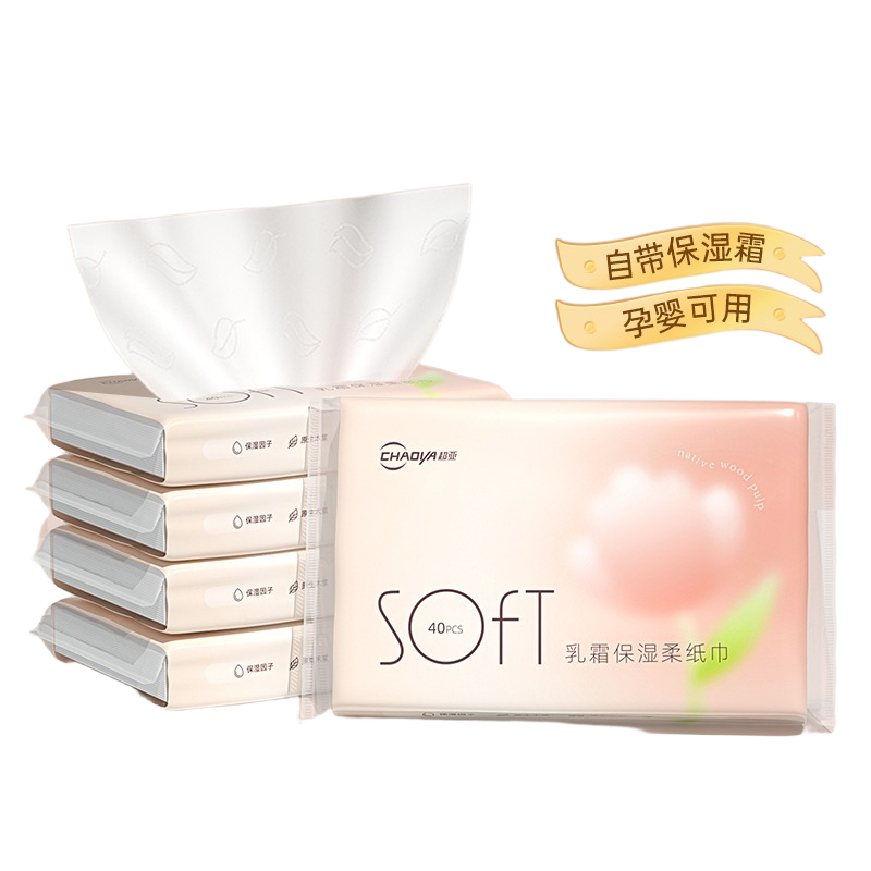 超亚云柔巾婴儿新生保湿乳霜纸巾抽纸超柔宝宝手口纸巾装40抽