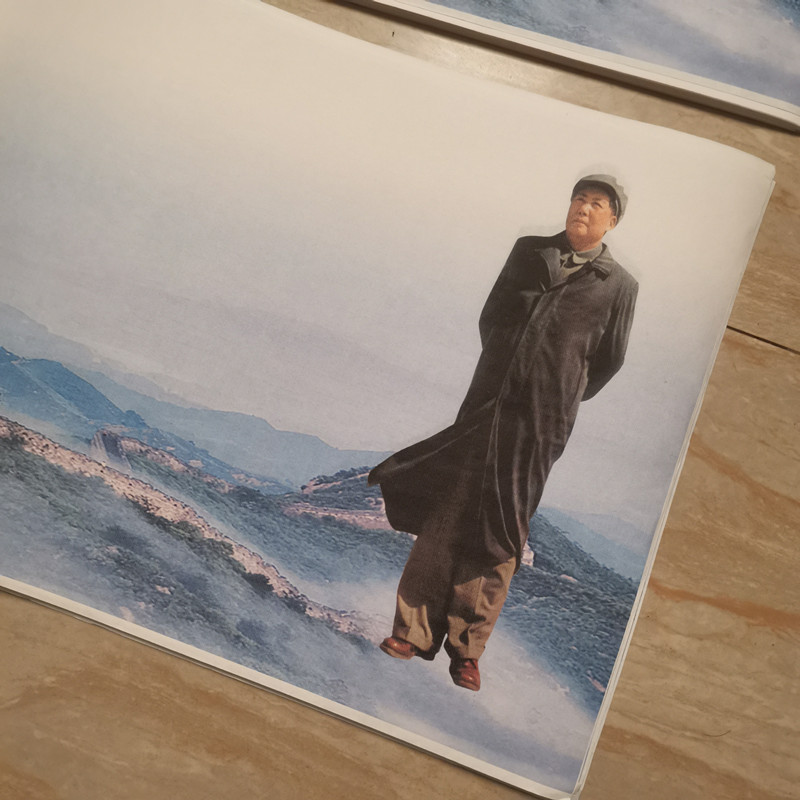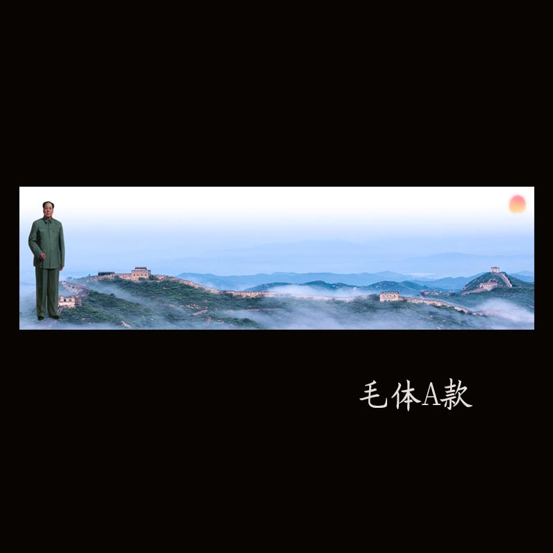 四六尺对开小六尺毛体作品宣纸微喷长城背景毛主席头像毛泽东站立