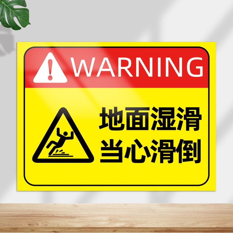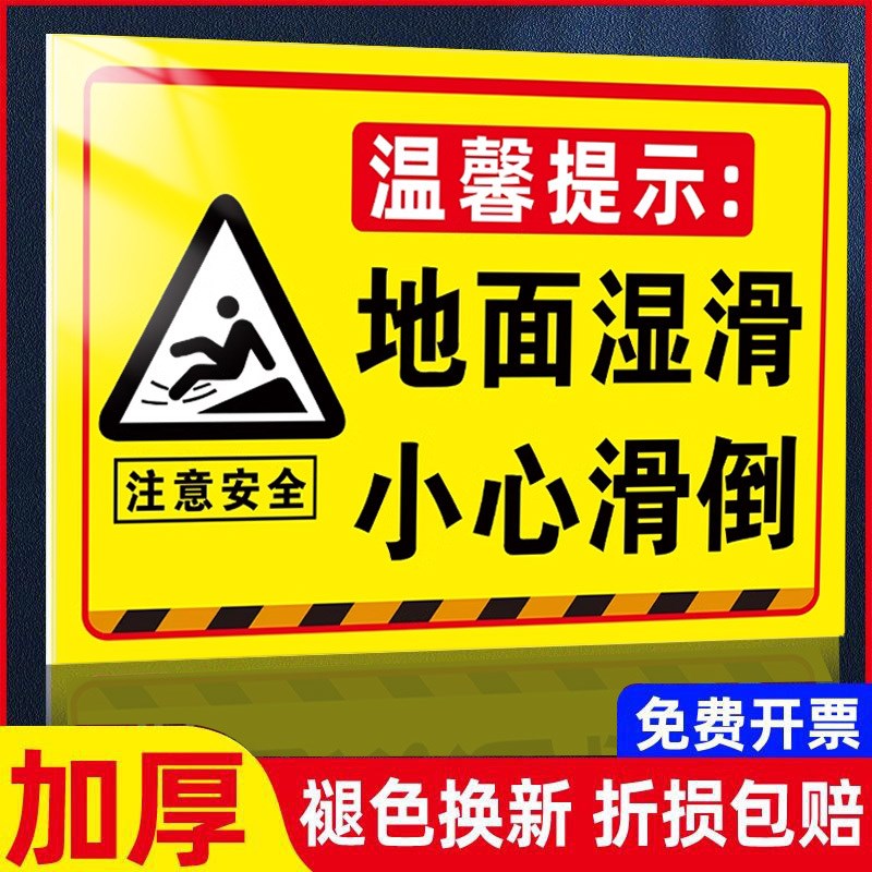 现货速发地面湿滑提示牌小心地滑提示牌路面湿滑雨天路滑警示牌注