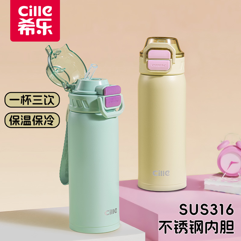 希乐保温杯男女大容量运动健身吸管杯学生上学便携316不锈钢水壶