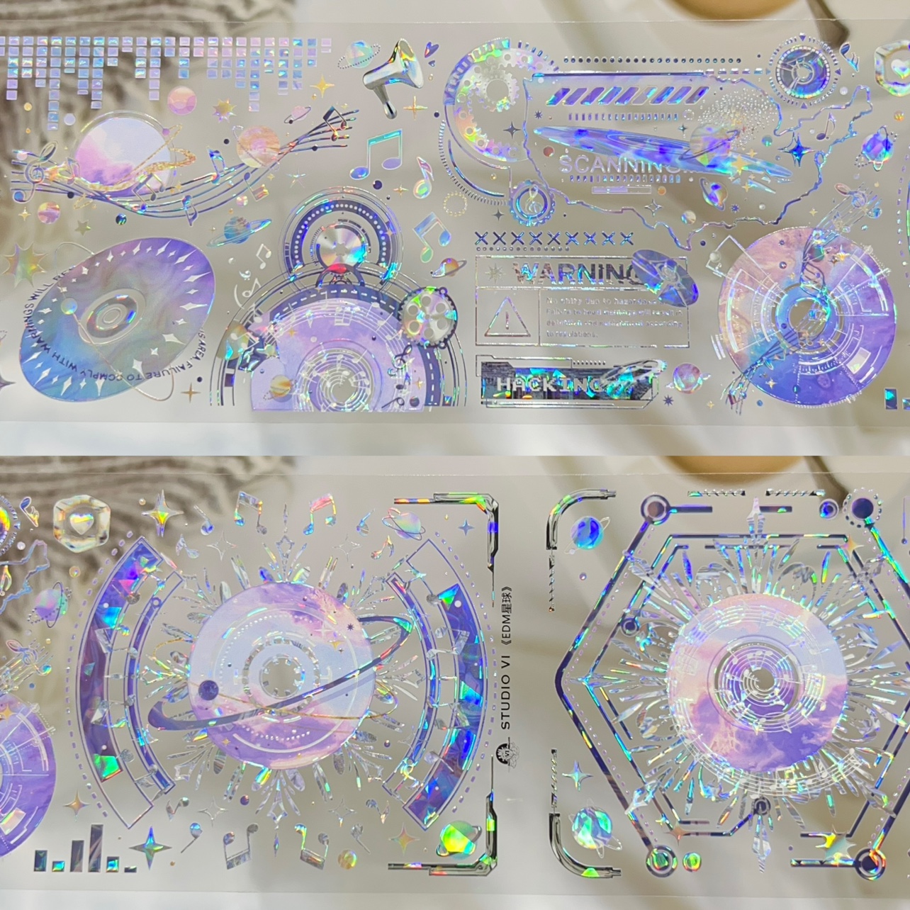 studioVI分装胶带EDM星球贝壳光机械星球手账素材流麻咕手账拼贴
