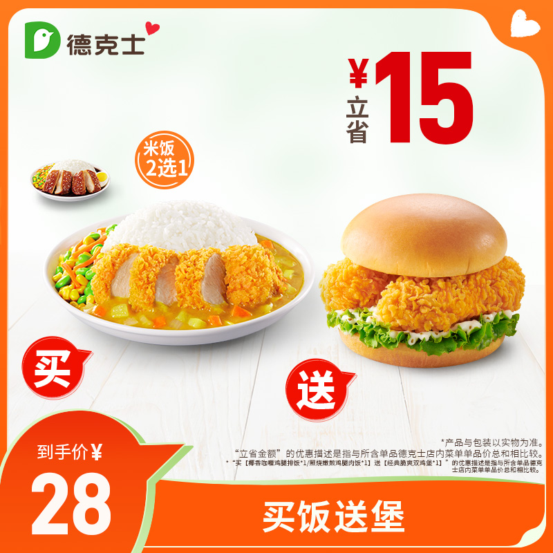 德克士 买饭送堡 单次券s【勿填陌生号码防诈骗】