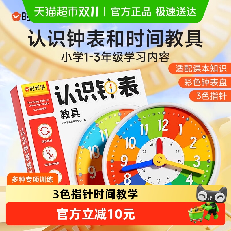 时光学认识钟表和时间教具开学季小学1-3年级学习钟表盘三针模型