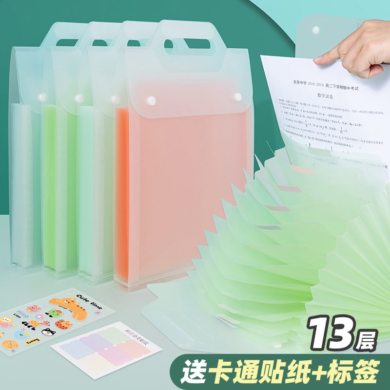 天色手提风琴包防水风琴文件包高中生大容量试卷收纳风琴包13层分类文件袋风琴收纳袋多层资料收纳文件夹1890
