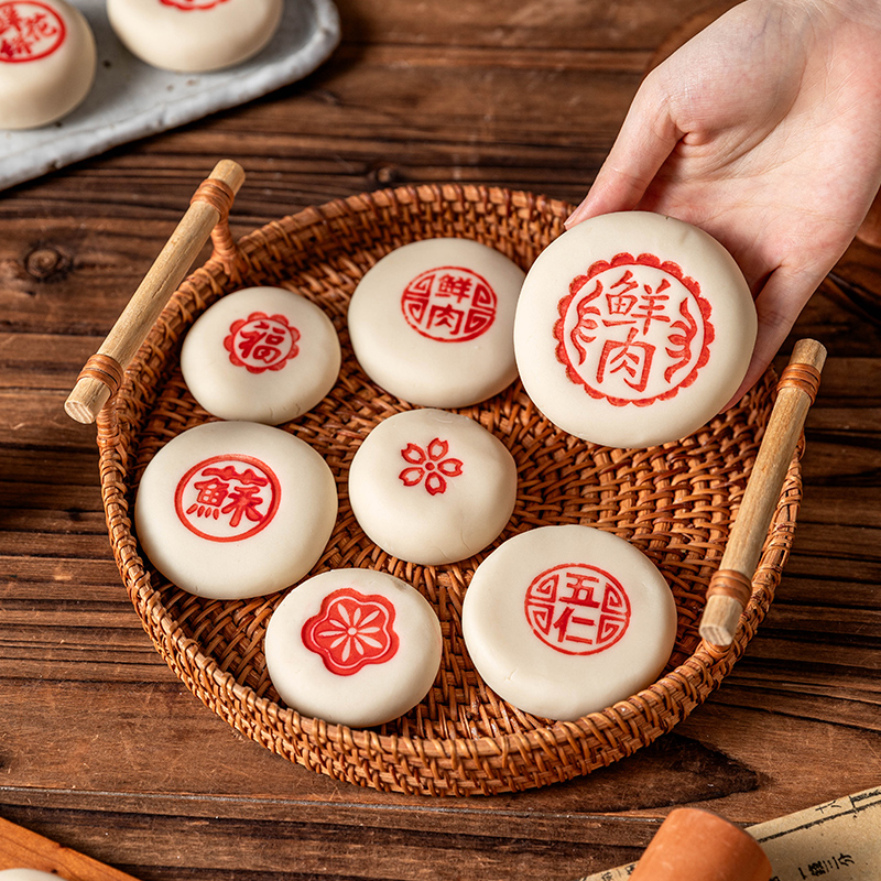 苏式月饼印章鲜肉猪原木质色素模具面食饼饽饽中式国潮风商用家通