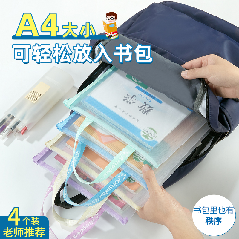 a4拉链袋文件袋学科袋办公学科分类收纳透明学生用加厚防水档案中小学生科目试卷收纳装作业文具网格补习袋