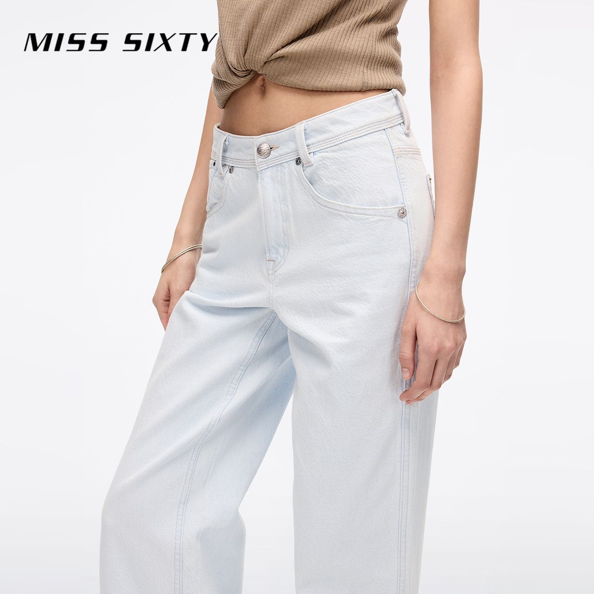 【进口牛仔面料】Miss Sixty2025夏季新款牛仔裤女直筒长裤及地裤