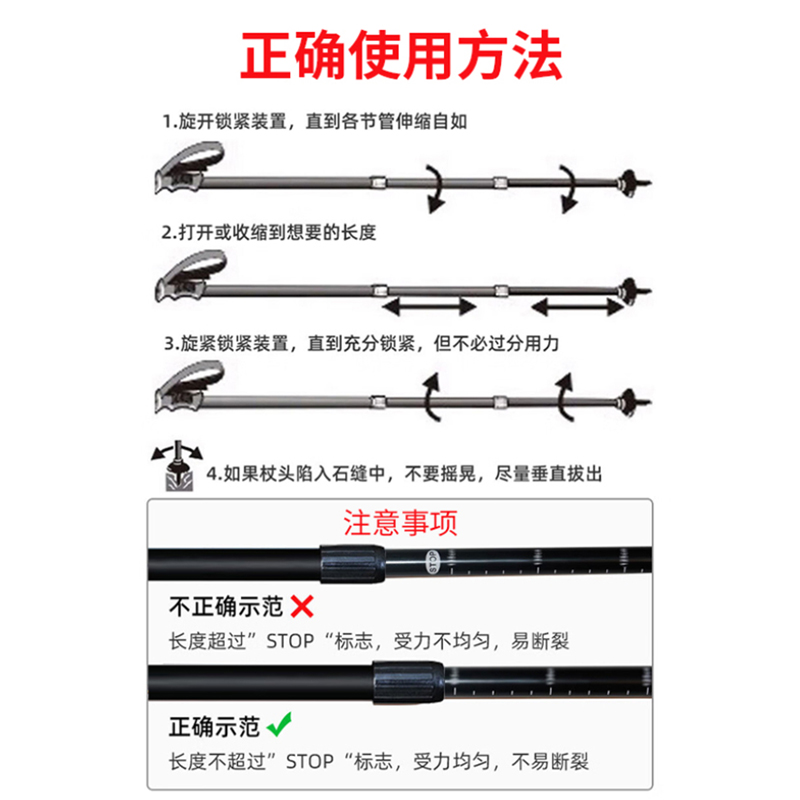 专业户外登山杖手杖男款女款便携式爬山拐杖徒步棍碳纤维超轻伸缩