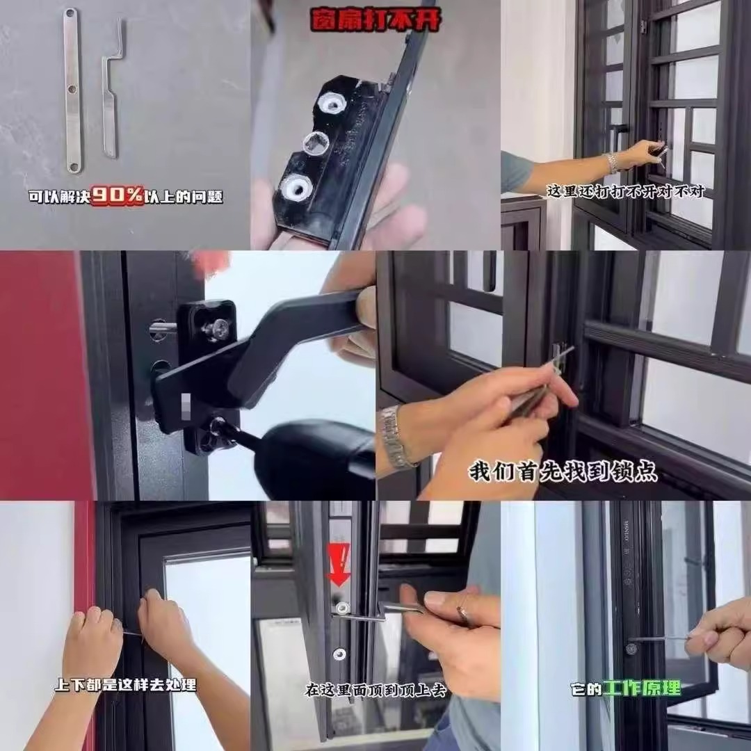 内外开窗户锁体锁死打不开窗纱一体窗扇锁盒坏了撬窗工具打开神器
