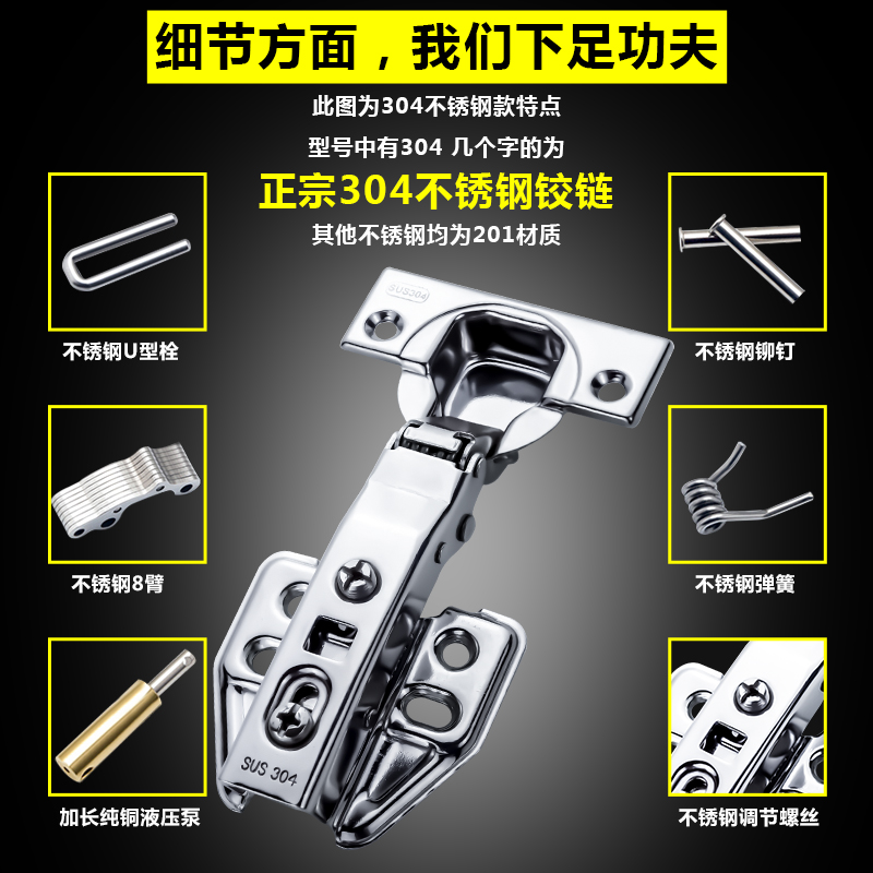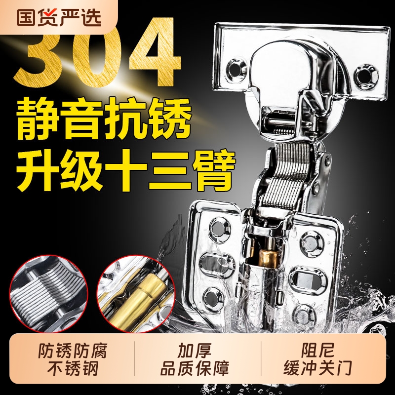 304不锈钢铰链阻尼缓冲橱柜门五金折叠中弯半盖弹簧液压飞机合页