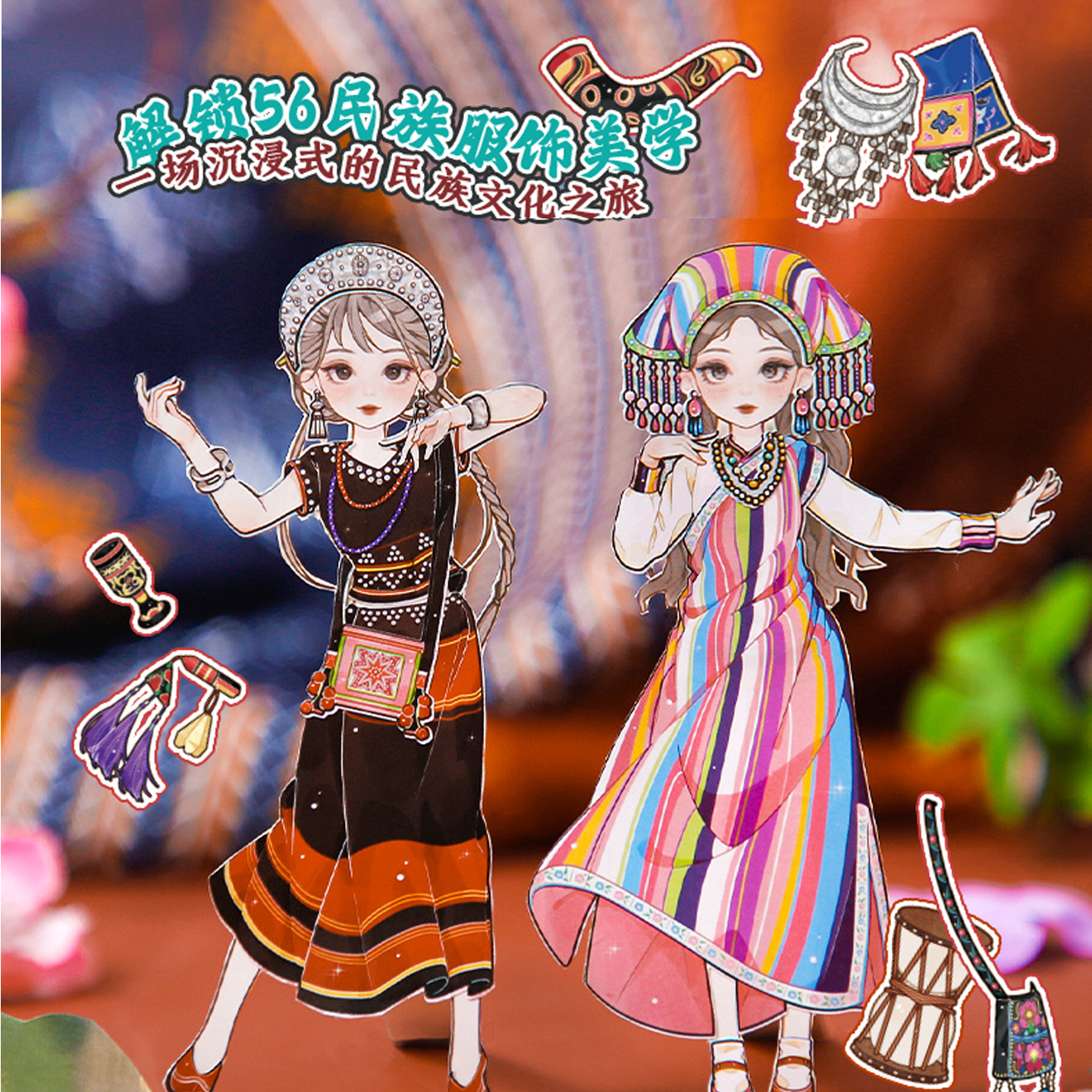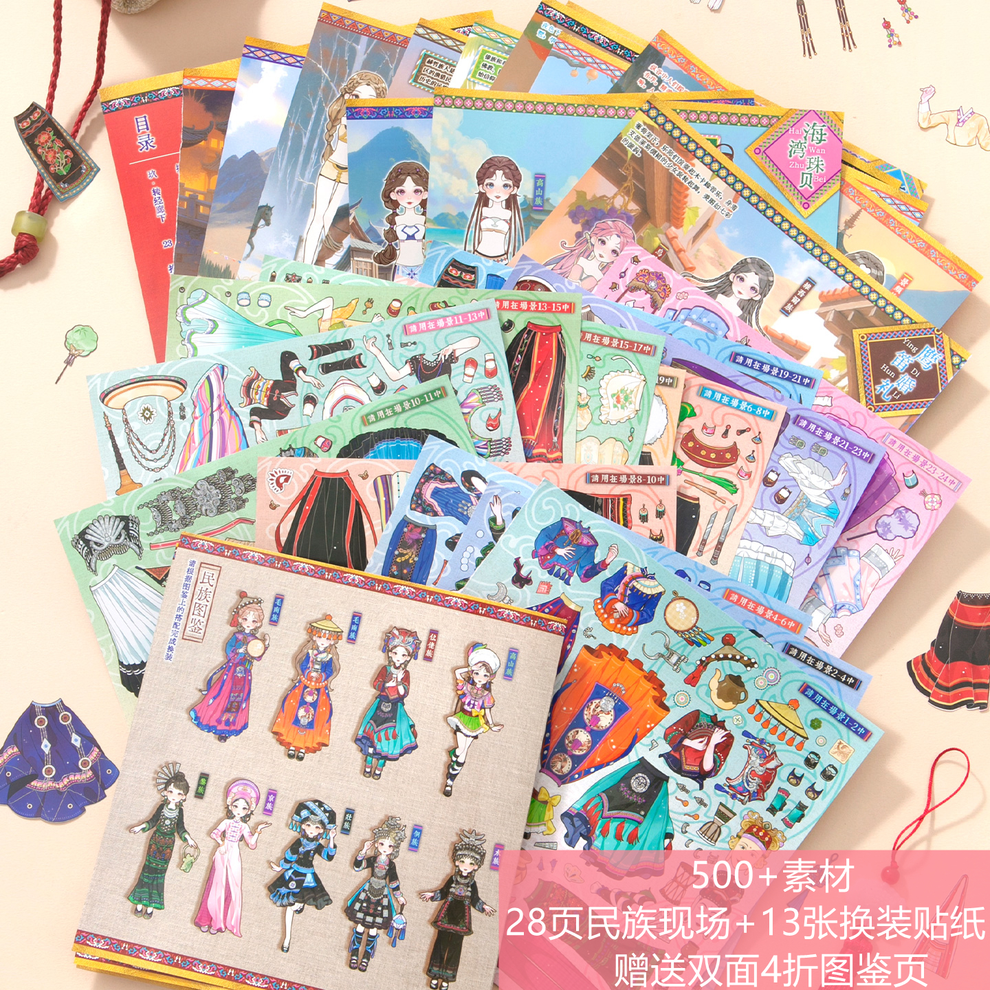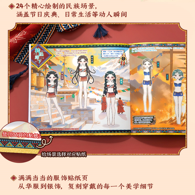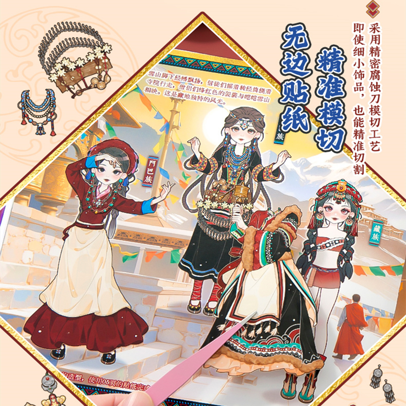 500+素材(免剪裁无白边)民族风主题不重复可爱人物少女换装游戏贴纸手帐DIY56789岁女孩儿童节生日礼物咕卡
