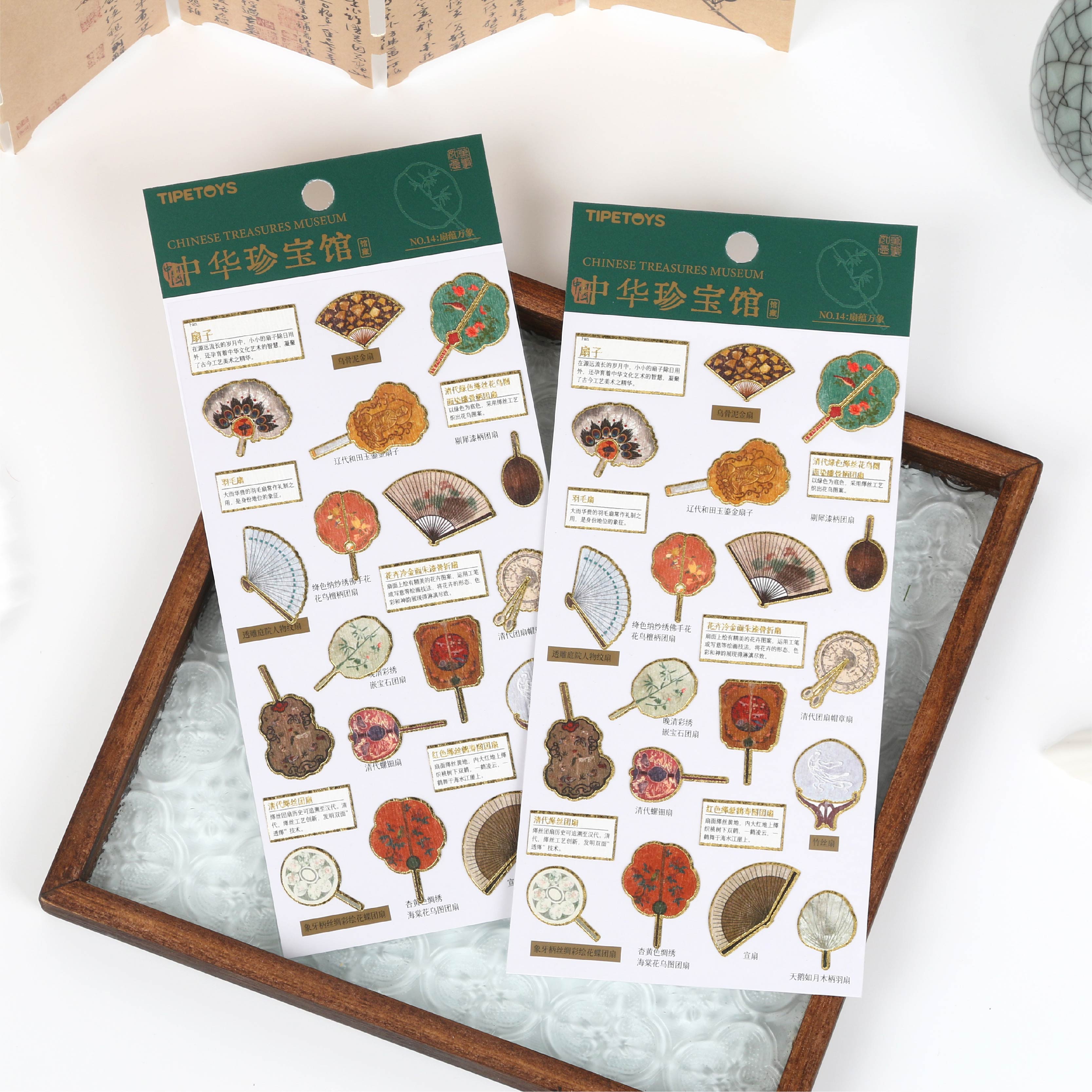 TIPETOYS国风咕卡中华珍宝馆扇蕴万象扇子贴纸博物馆原创中国文物庭院人物纹扇笔记本桌面手账装饰无痕贴画