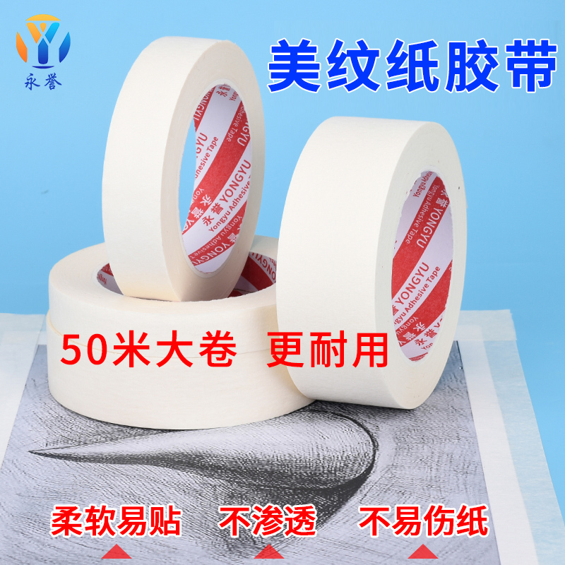 美纹纸胶带美术生专用学生画画素描绘写字美文胶纸白色美术纸可书写不残留墙面无痕胶纸批发50米美纹和纸胶带