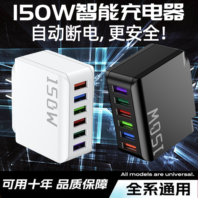 150W充电头大功率usb插口智能断电快充头六口同时充电智能快充适用苹果安卓华为小米通用充电器