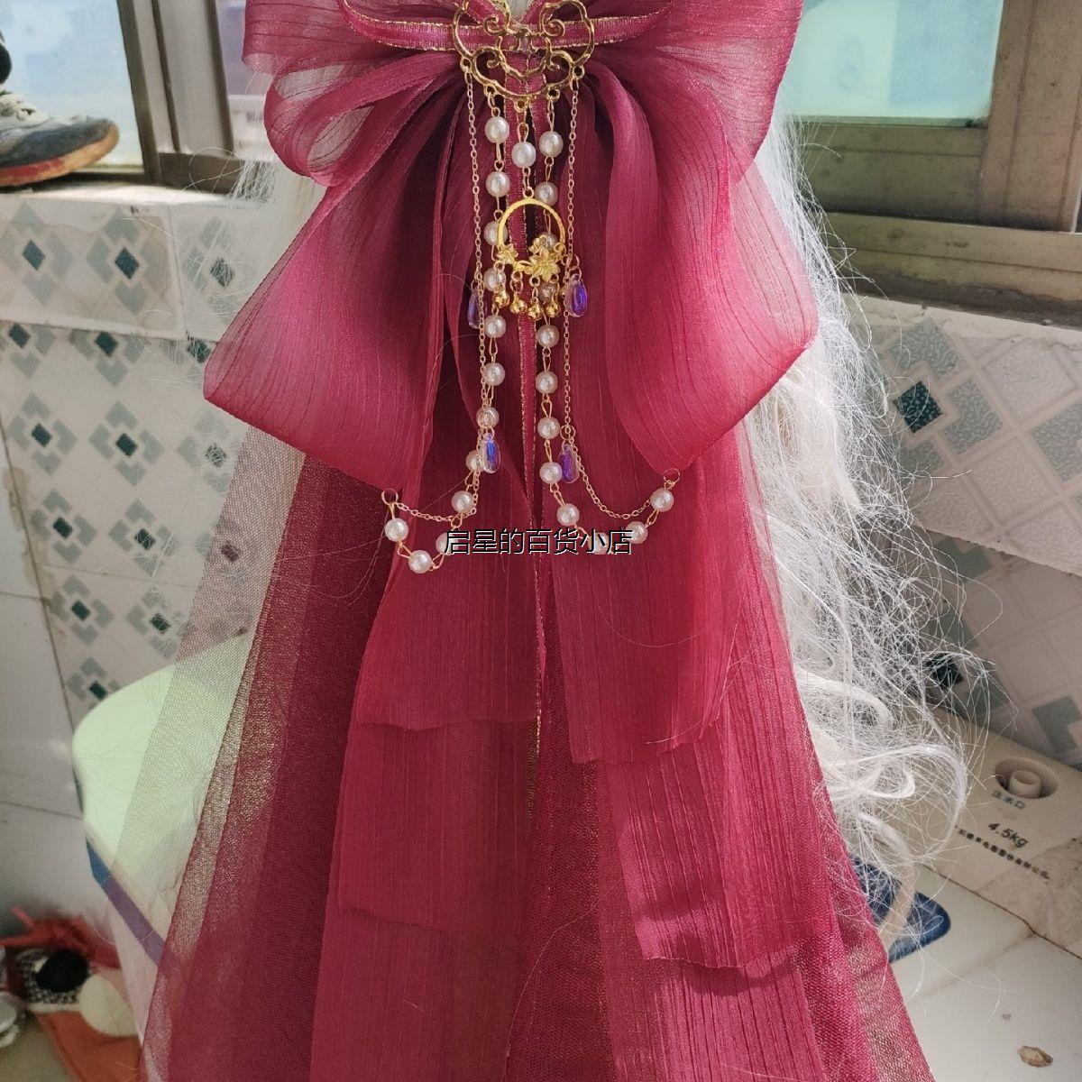 洛丽塔大蝴蝶结飘带头纱中华风酒红小物搭太炎兽发饰弹簧夹