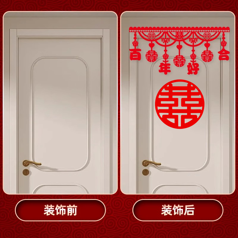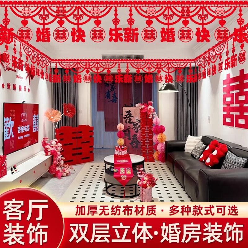 结婚门楣横彩拉花婚房布置吊顶装饰客厅卧门帘室喜字挂件婚庆用品