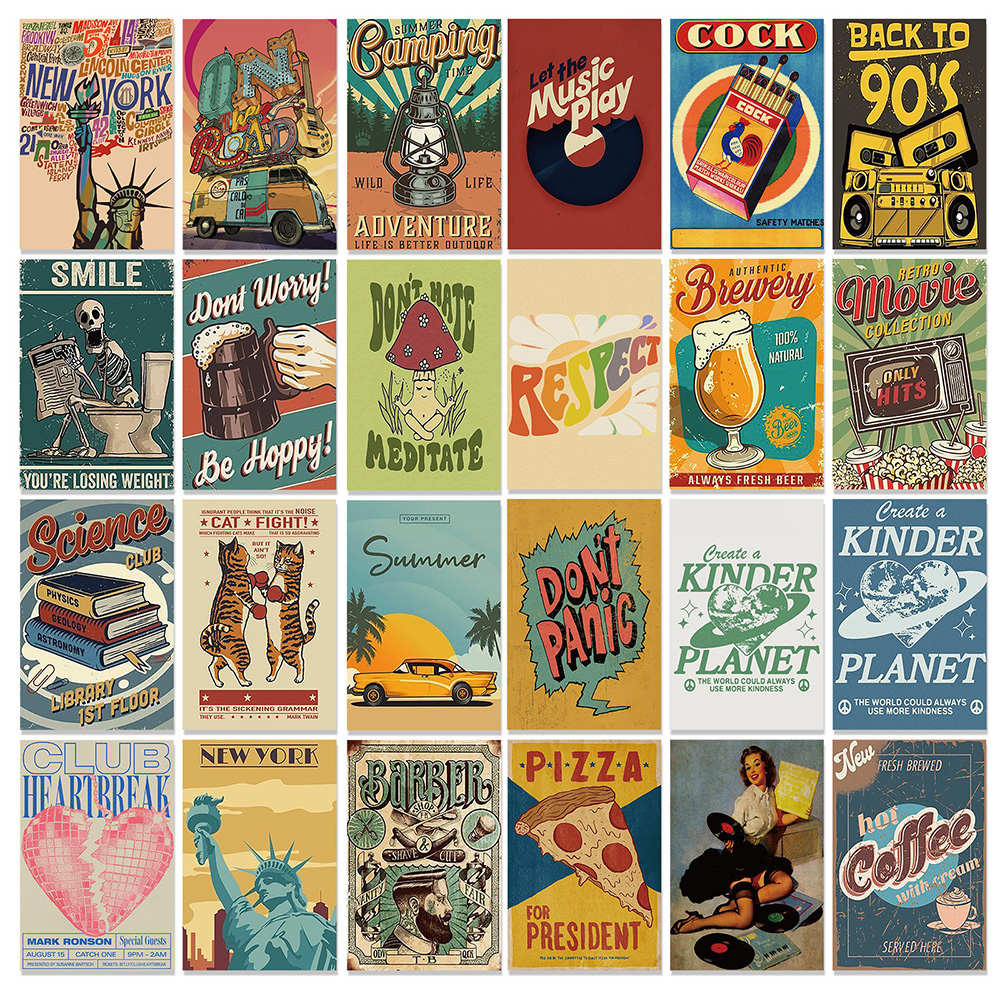 50张ins美式复古海报卡片艺术涂鸦墙面明信片装饰背景拍照摄影道