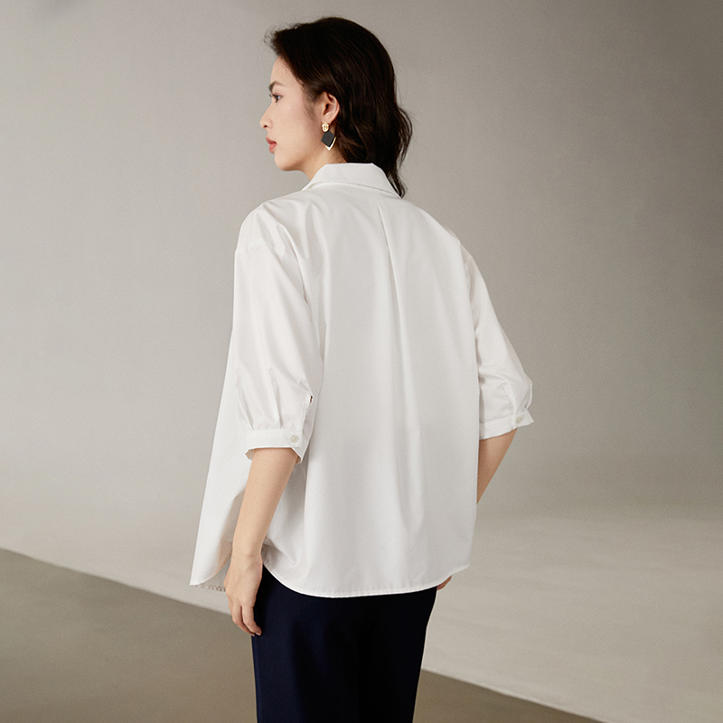 晚白2025年秋新款气质翻领全棉衬衫休闲通勤职场中袖衬衫女