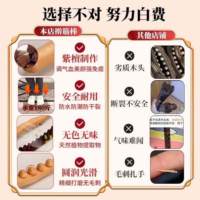 檀木擀筋棒按摩全身通用刮痧棒经络疏通揉腹部赶筋棍推背工具榉木