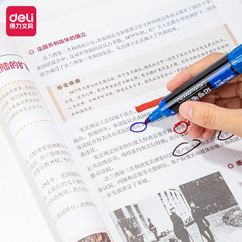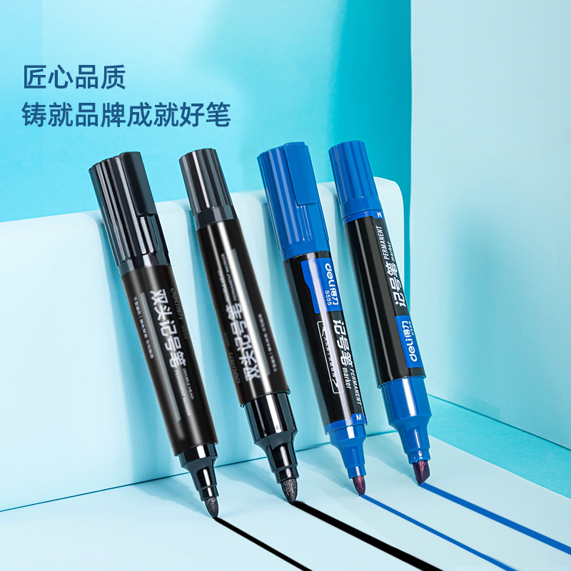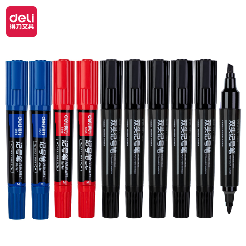 得力大双头记号笔黑色斜头粗头特大号勾线笔美术专用细头油性红色防水防油速干不掉色持久记号笔大容量大头笔
