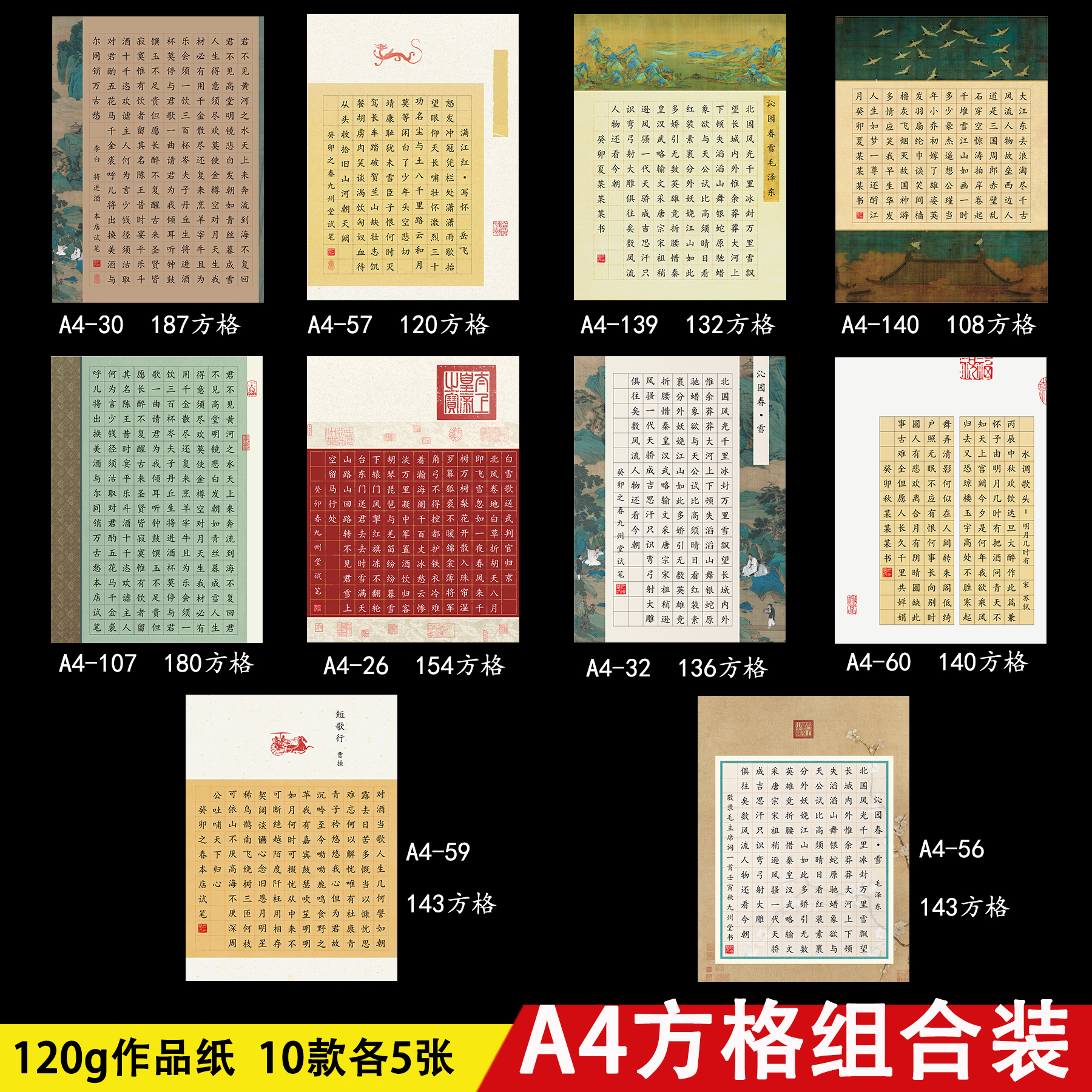 标准A4加厚复古硬笔书法纸a4小学生比赛中国风作品纸方格钢笔字纸