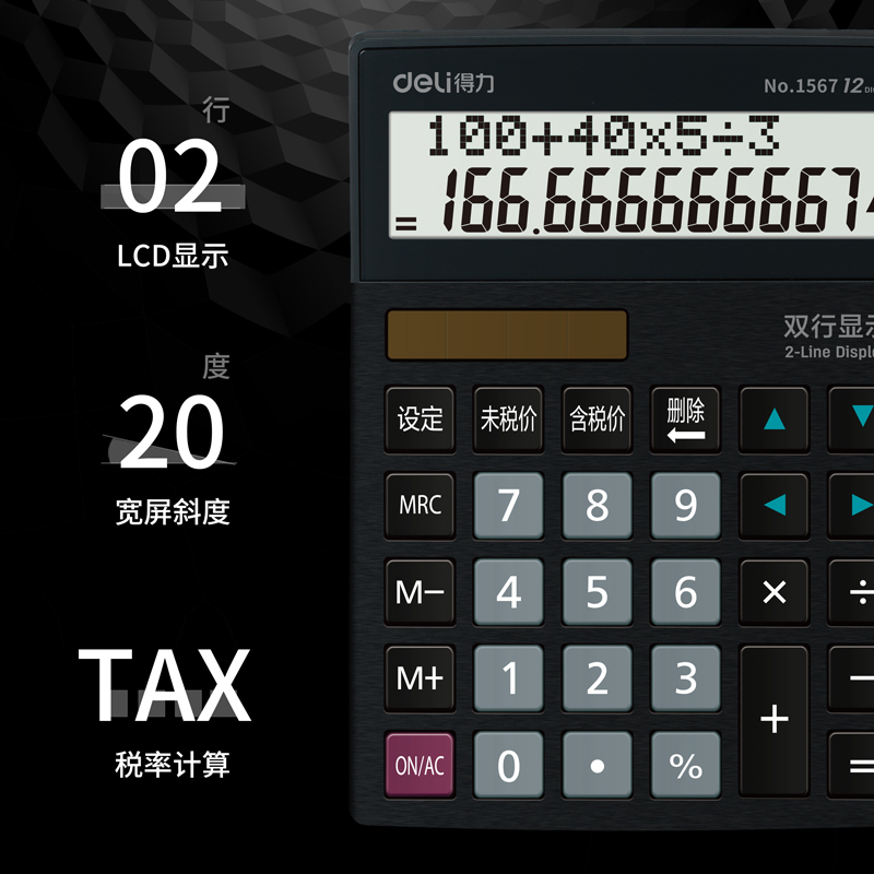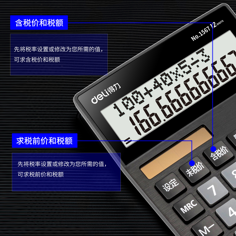 得力1567计算器双行显示计算过程财务PAR计算机四则混合运算