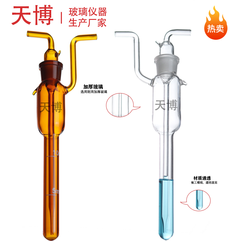 刻度白色棕色大型气泡吸收瓶10ml 甲醛采样25ml 气体采样管瓶50ml