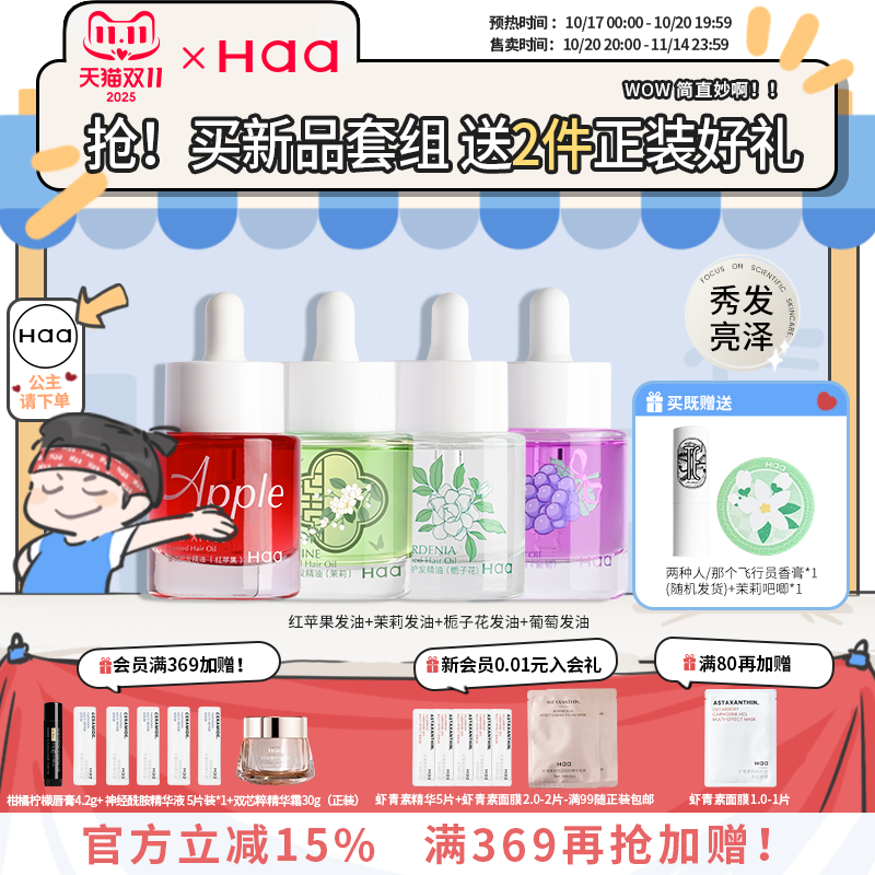 Haa香氛发油茉莉小苍兰护发精油防毛糙改善干枯头发柔顺留香护发