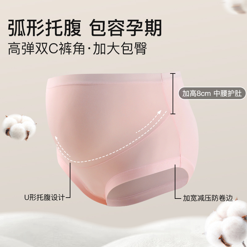 孕町孕妇内裤纯棉女怀孕早中晚期专用低腰托腹大码7A抗菌全棉春夏