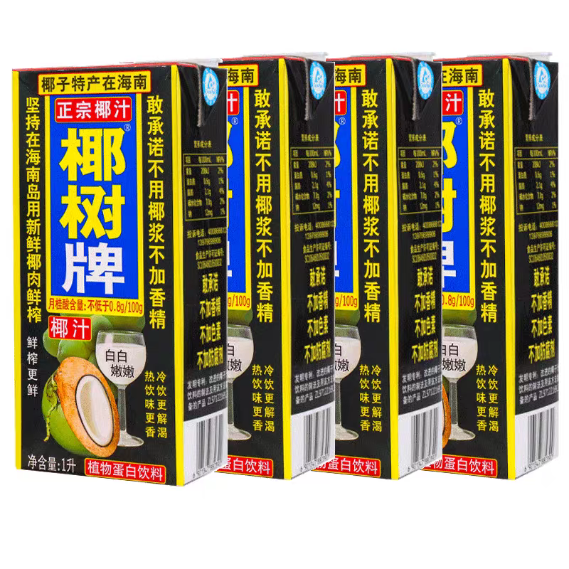 海南正宗椰树牌椰汁饮料天然植物蛋白椰子汁1L*4盒装鲜榨新鲜