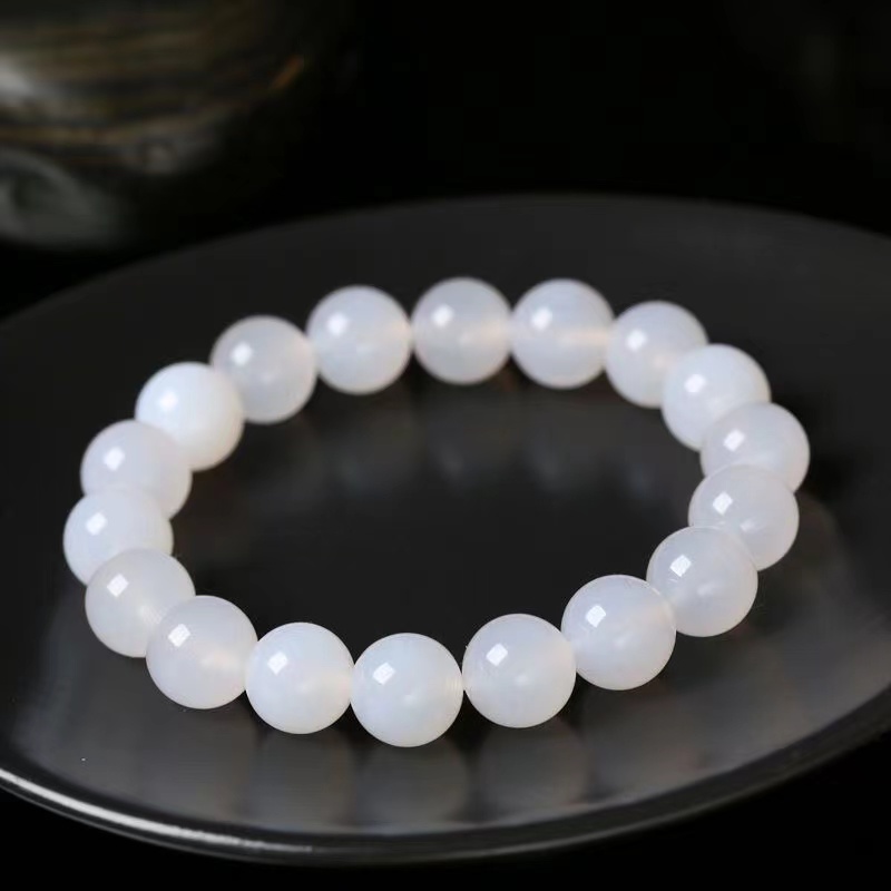 天然白玛瑙手链正品荔枝冻玉髓珠子串珠多圈水晶串白月光玛瑙手链