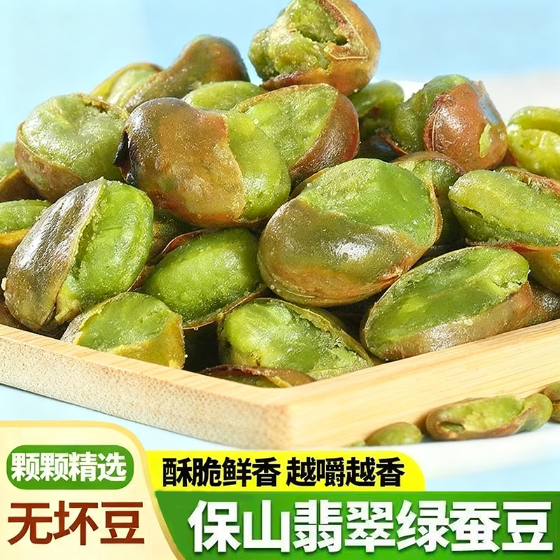 云南保山绿心蚕豆带壳油炸蚕豆翡翠绿蚕豆兰花豆香酥零食下酒菜