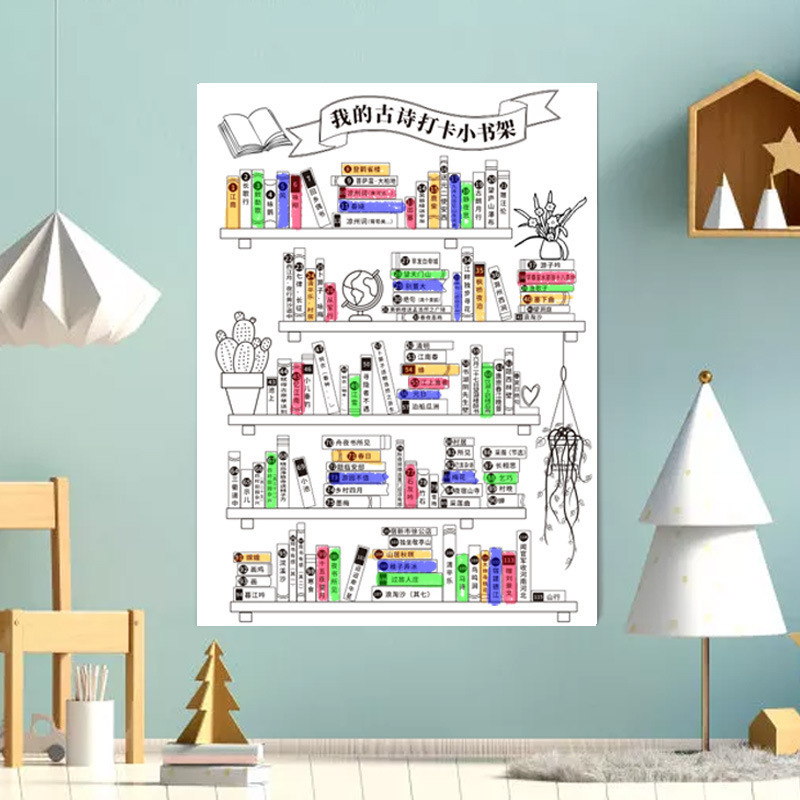 我的古诗打卡小书架129首自律古诗词打卡背诵计划安排涂色表儿童