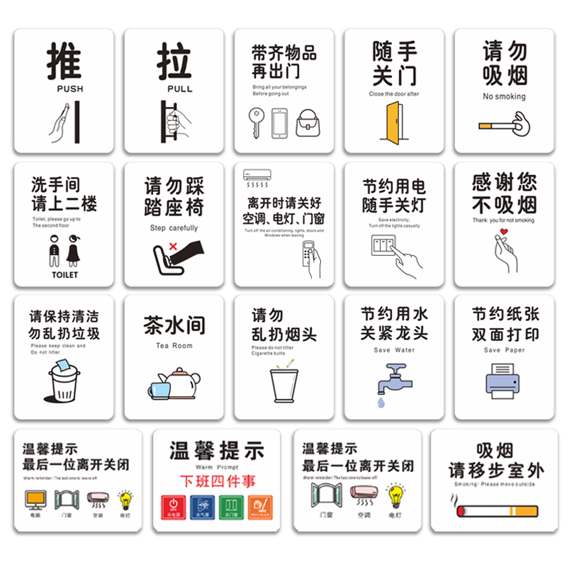 节约用纸每次一张小心地滑台阶提醒贴推拉门茶水间门牌订制上二楼节节约用水用电用纸下班关空调防水定制牌