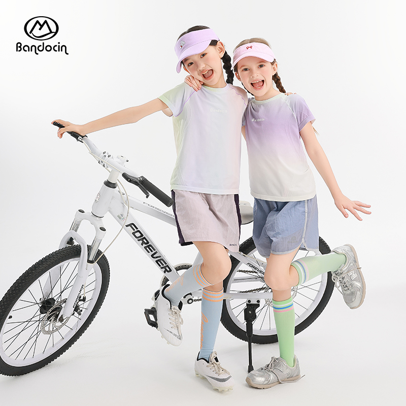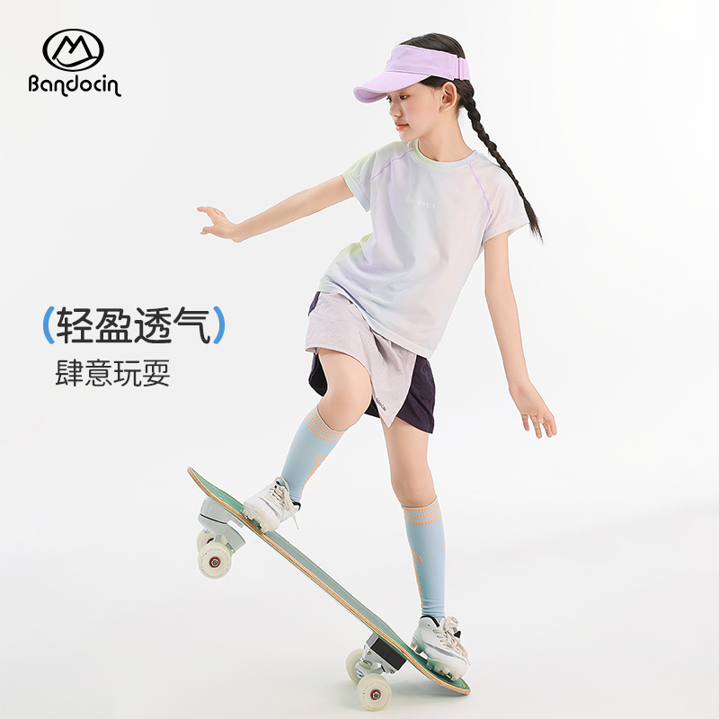 半度闲女童速干渐变t恤夏季薄款透气2025新款儿童夏装运动上衣潮T