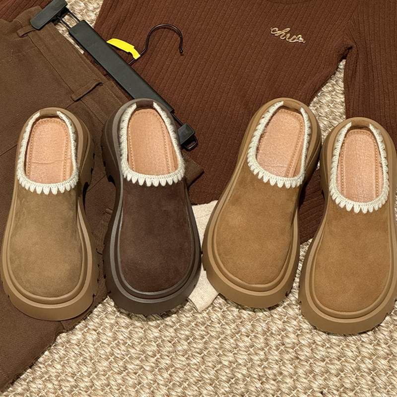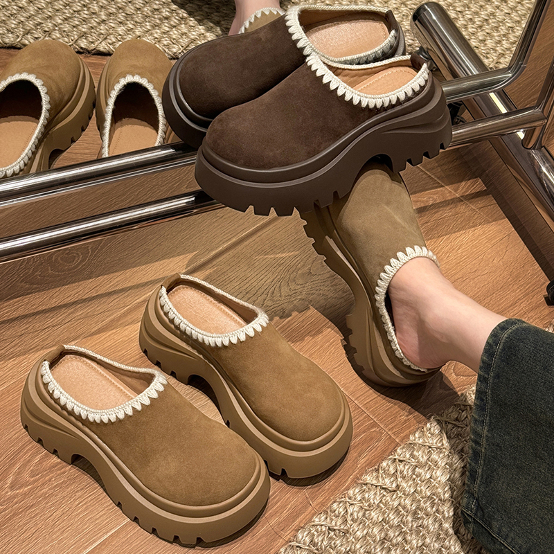 叁叔家~内增高勃肯鞋女加绒秋冬保暖毛毛半拖外穿厚底博肯鞋