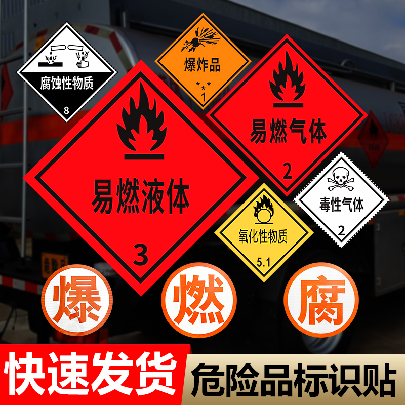 安全告示标识牌 危险品车贴品种种类施救方法联系电话核载质量罐体体积消防安全警示标志警告牌贴纸标牌牌子