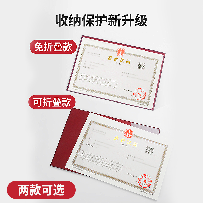 新版营业执照保护套软正副本折叠证套横板个体开户许可证卡套正本a3副本a4工商营业执照不折叠防尘证件皮革