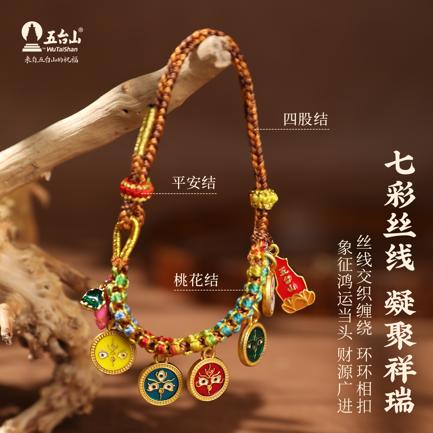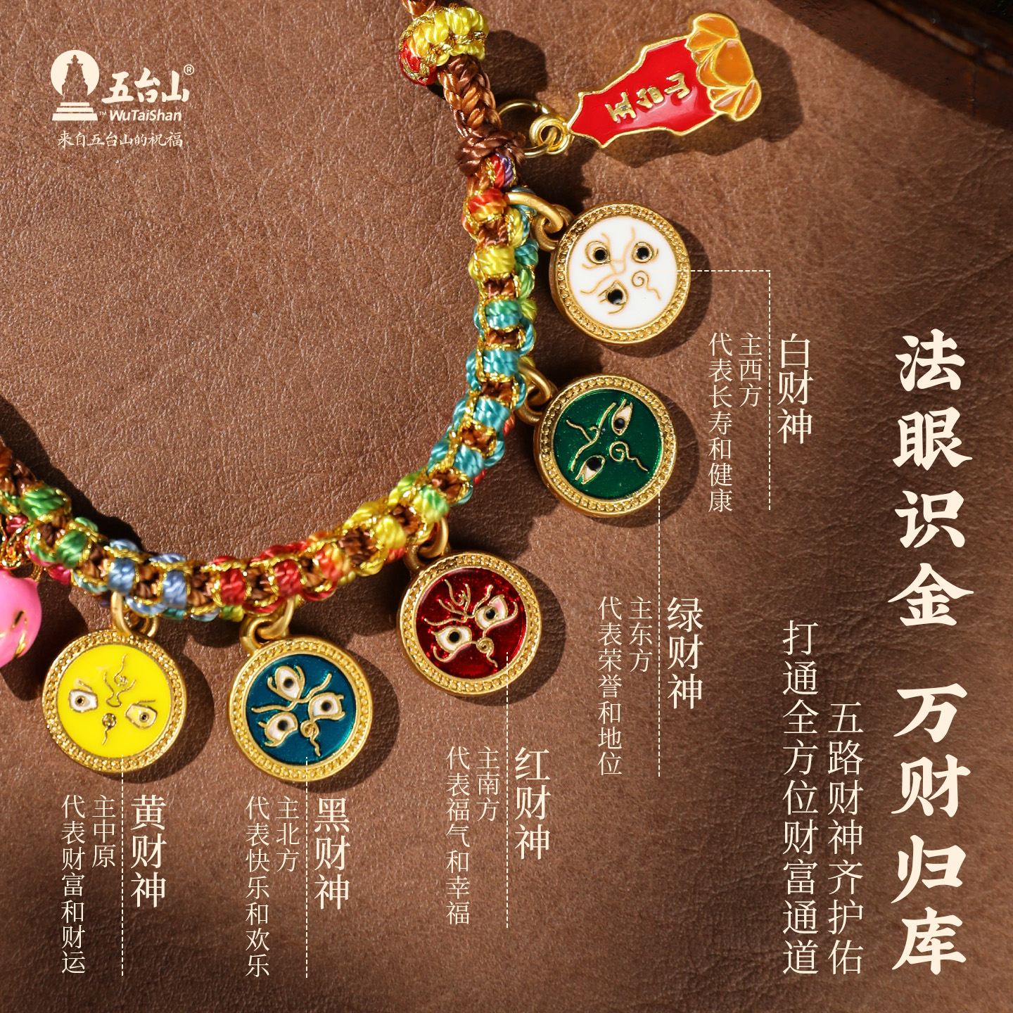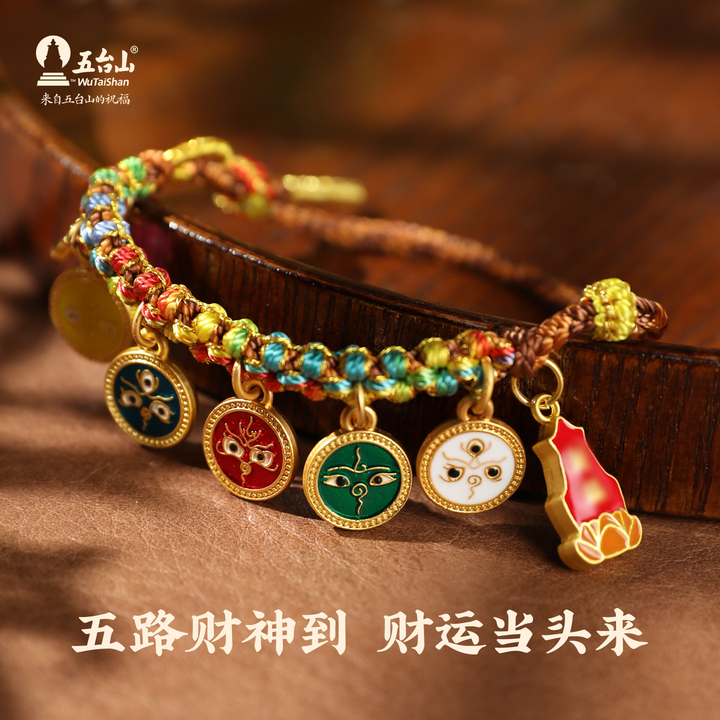 五台山五路财神手绳藏式手工编织绳招财转运保平安可调节手绳礼物