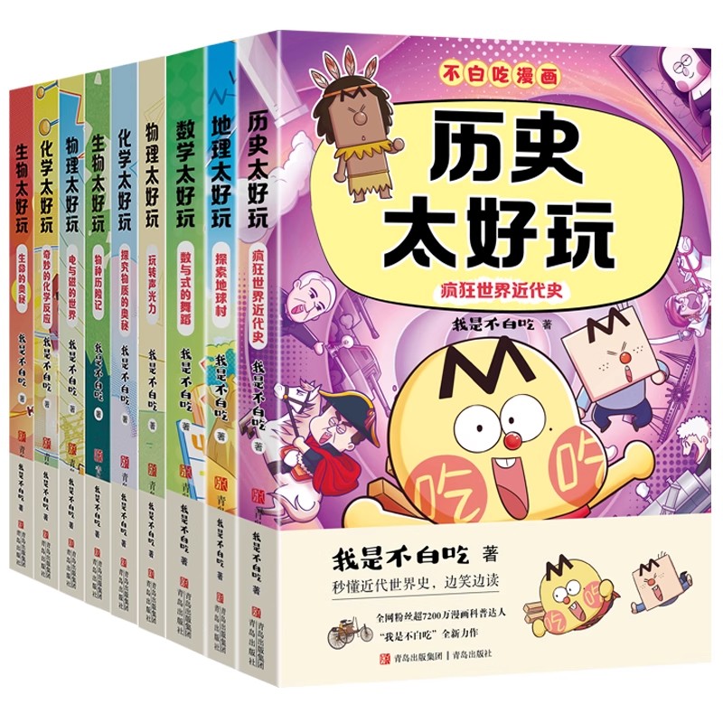 不白吃漫画系列历史地物化生数学太好玩套装儿 童趣味物化生科普漫画让孩子轻松掌握基础知识“我是不白吃全新力作 学科启蒙系列