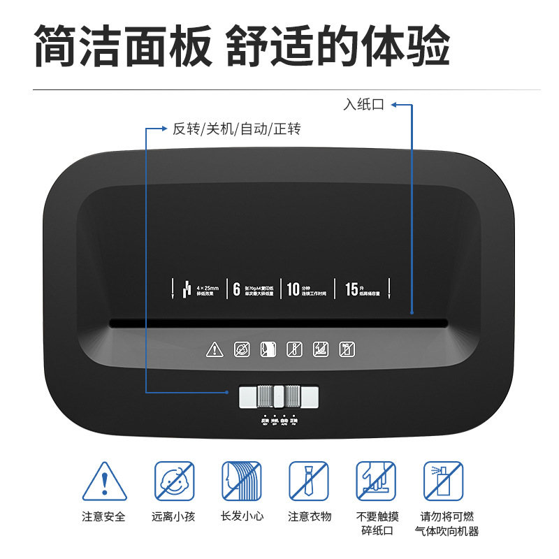得力(deli)小型家用办公碎纸机GA110 单次6张 连续碎纸10分钟 15L
