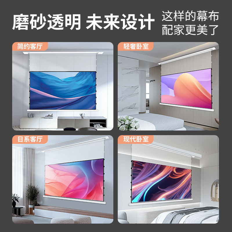 VIMSA嵌入式投影幕布隐藏式电动悬浮幕布适用小米当贝极米爱普生家用高清联动升降菲涅尔抗光幕布天花隐藏幕